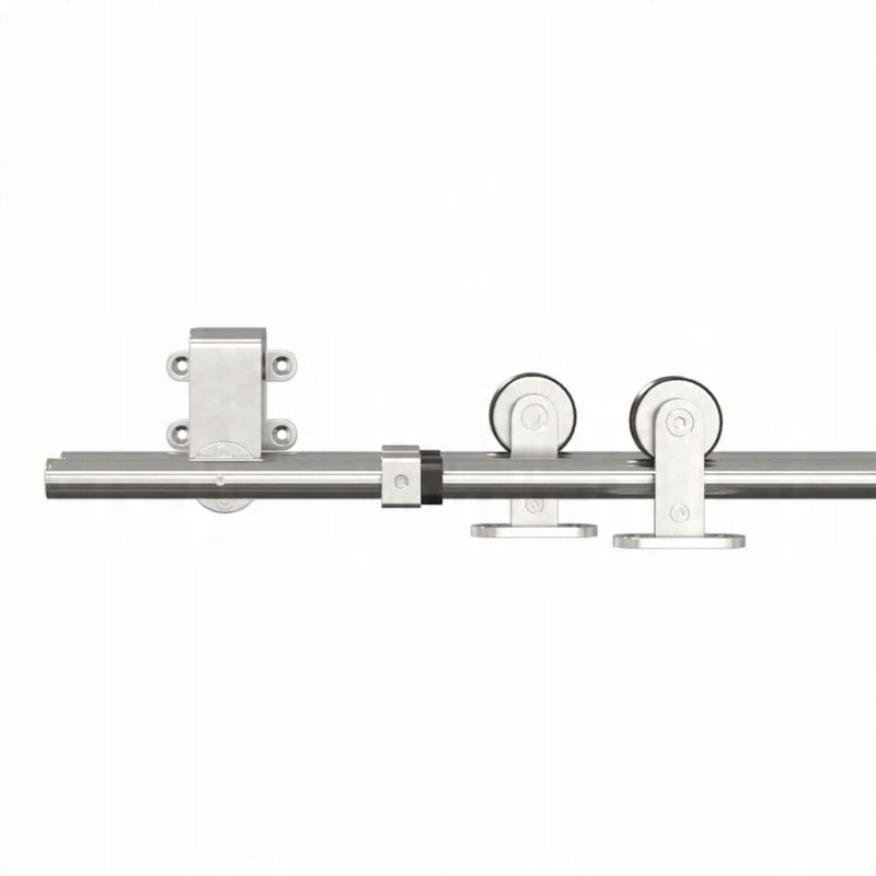 System mocowania drzwi przesuwnych, wykonany ze stali nierdzewnej, charakteryzuje się wysoką odpornością na odkształcenia oraz rdzę. Dzięki temu możesz cieszyć się jego funkcjonalnością przez długi czas, niezależnie od warunków panujących w Twoim domu.