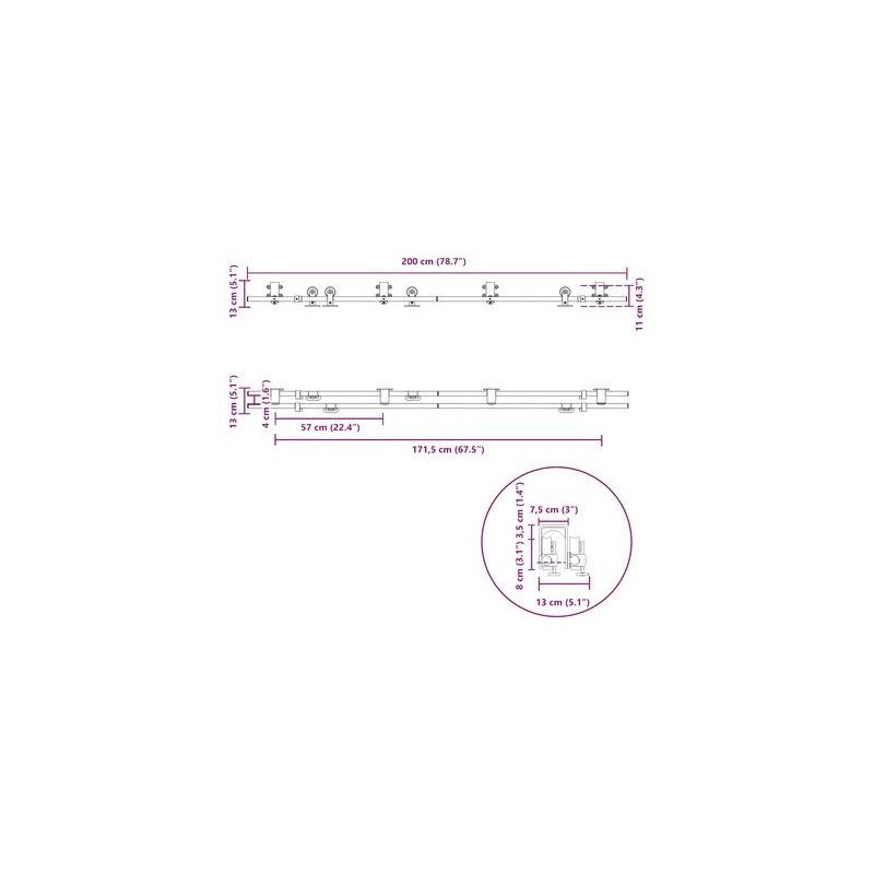 Specyfikacja techniczna systemu mocowania drzwi przesuwnych vidaXL