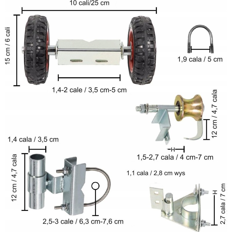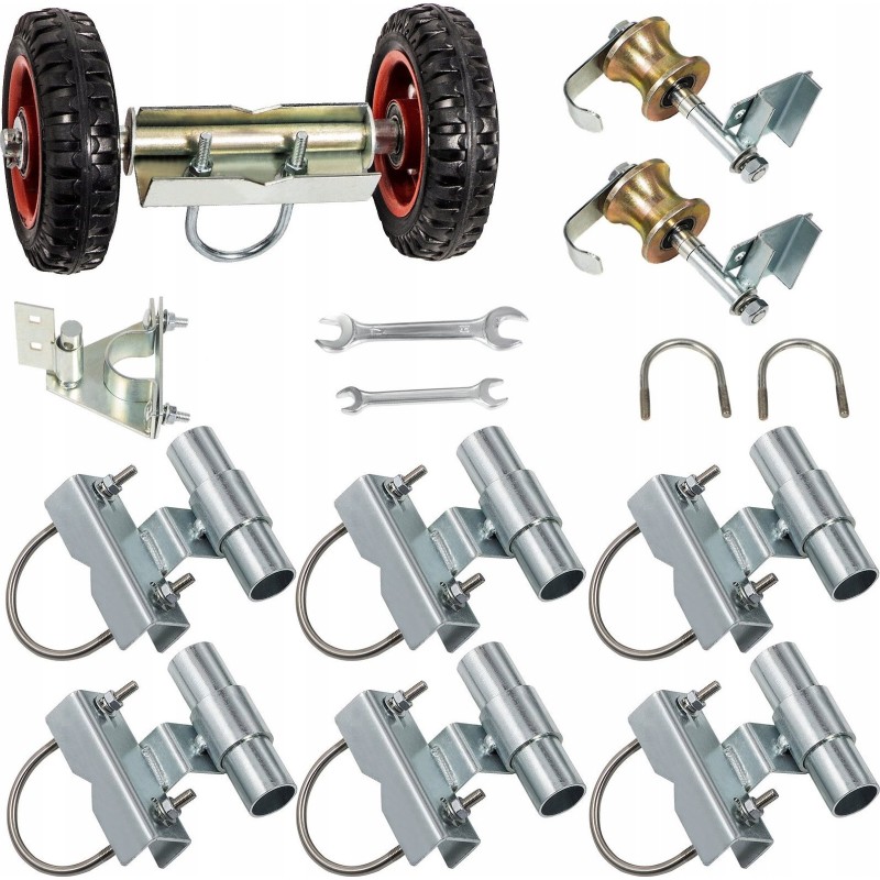 W naszym pakiecie znajdują się wszystkie akcesoria potrzebne do zbudowania prostych drzwi, takie jak: Np. podwójny nośnik kół, wsporniki łańcucha itp. Dzięki temu z łatwością wykonasz całe zadanie.