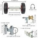 Podwójny wspornik składa się z 2 kółek z pełnej gumy o średnicy około 15 cm i ramy wykonanej ze stali ocynkowanej, która jest odporna na rdzę i korozję. Rolki jezdne, wsporniki szyn i zamki drzwi rolkowych są również wykonane ze stali ocynkowanej. 6 sztuk zacisków w kształcie litery U wykonanych jest ze stali nierdzewnej 201, która jest trwała i wytrzymała.