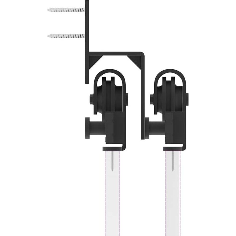 - Zawiera: 4 szyny, 4 blokady drzwi, 4 rolki, 2 prowadnice podłogowe, 10 zacisków mocujących, 5 wsporników do drzwi
