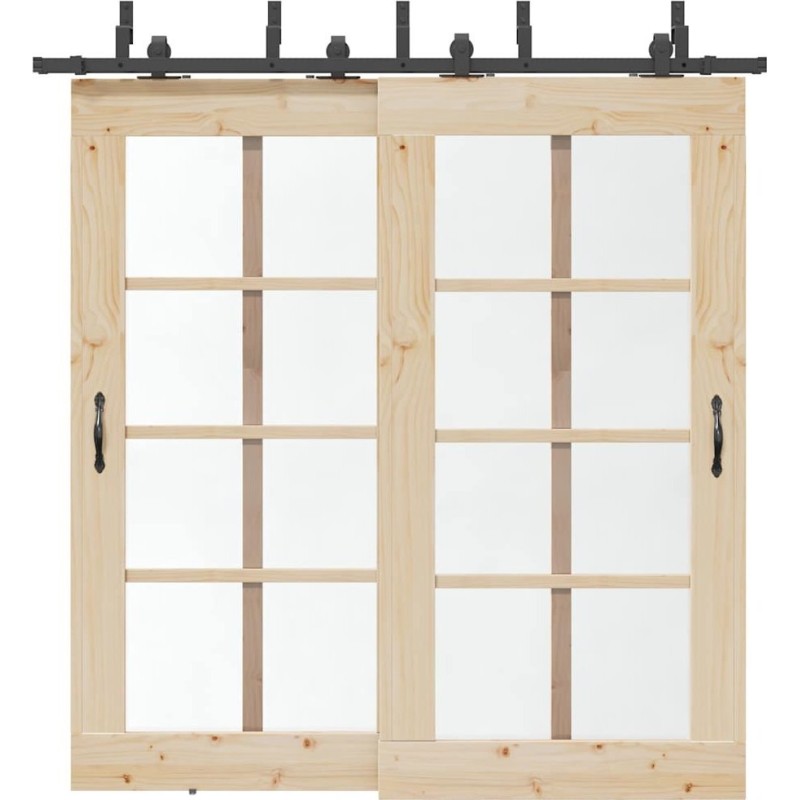 - Idealny do podwójnych drzwi do stodoły: gdy przestrzeń na ścianie jest ograniczona, zestaw uchwytów omijających drzwi do stodoły umożliwia niezależne przesuwanie dwóch drzwi na dwóch szynach bez konieczności zapewnienia dodatkowego miejsca.