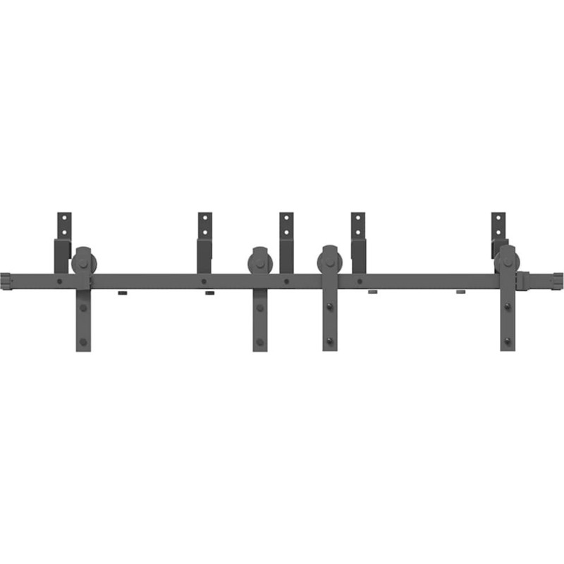 Dzięki temu zestawowi okuć do drzwi przesuwnych możesz łatwo zamontować podwójne szyny, aby drzwi przesuwały się jedne przed drugimi, a drugie za sobą.