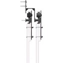 - Idealny do podwójnych drzwi do stodoły: gdy przestrzeń na ścianie jest ograniczona, zestaw uchwytów omijających drzwi do stodoły umożliwia niezależne przesuwanie dwóch drzwi na dwóch szynach bez konieczności zapewnienia dodatkowego miejsca.