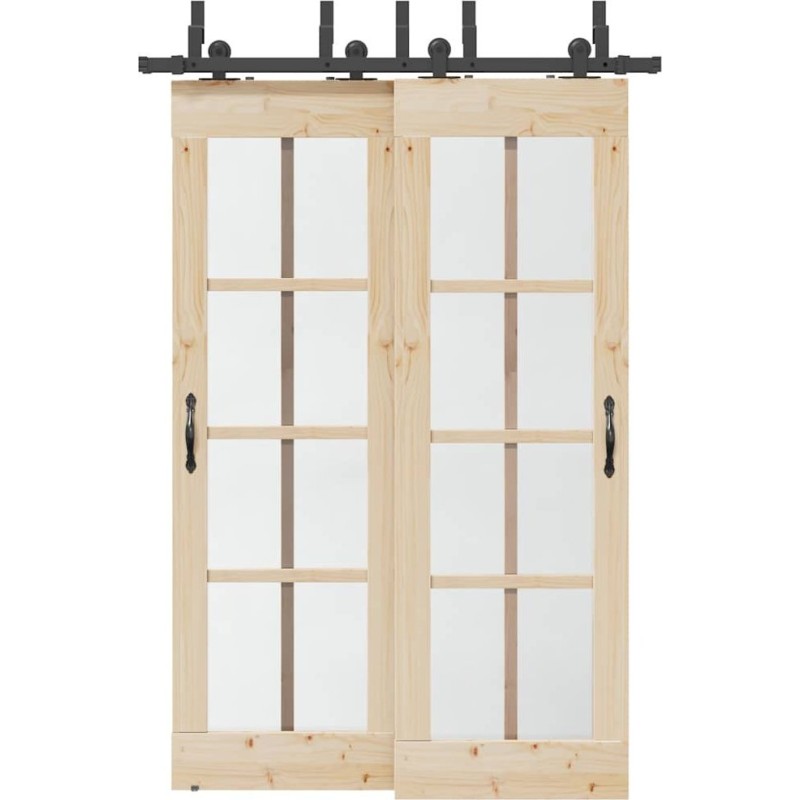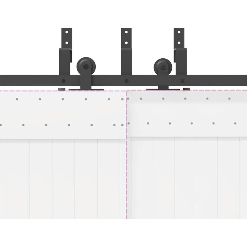 - Idealny do podwójnych drzwi do stodoły: gdy przestrzeń na ścianie jest ograniczona, zestaw uchwytów omijających drzwi do stodoły umożliwia niezależne przesuwanie dwóch drzwi na dwóch szynach bez konieczności zapewnienia dodatkowego miejsca.