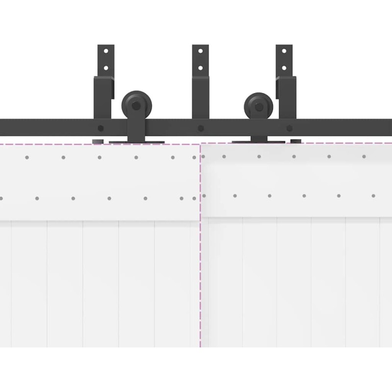 - Idealny do podwójnych drzwi do stodoły: gdy przestrzeń na ścianie jest ograniczona, zestaw uchwytów omijających drzwi do stodoły umożliwia niezależne przesuwanie dwóch drzwi na dwóch szynach bez konieczności zapewnienia dodatkowego miejsca.