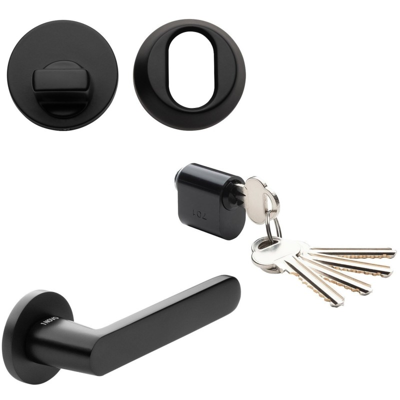 Handle, cylinder and keyhole door set TORINO 178 ZNE, locks 565, black color.