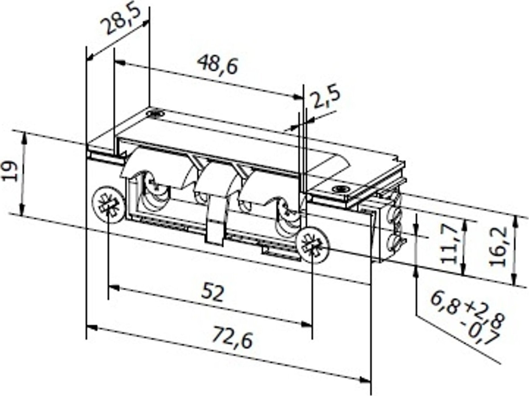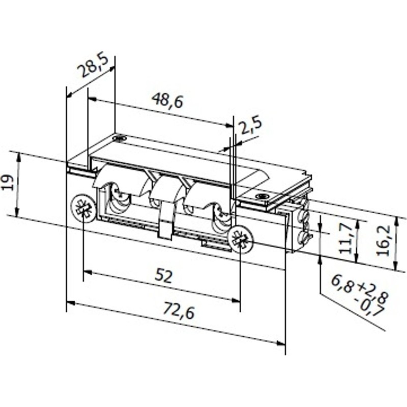 Wymiary: szerokość 19 mm x wysokość 67 mm x głębokość 28 mm, wersja z monitoringiem: 19(23,5) mm x 72,6 mm x 28,5 mm