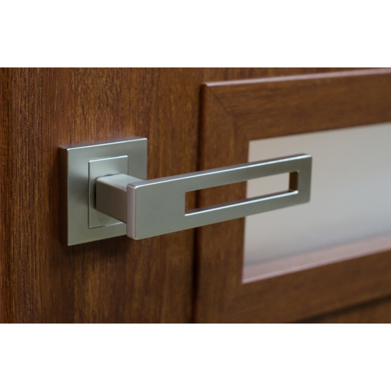 Klamka wyróżnia się kwadratową tarczką oraz matowym wykończeniem, co nadaje jej nowoczesny i elegancki wygląd. Dzięki temu, klamka TOM G5 doskonale harmonizuje z różnorodnymi stylami wnętrz, zarówno w domach, jak i biurach.