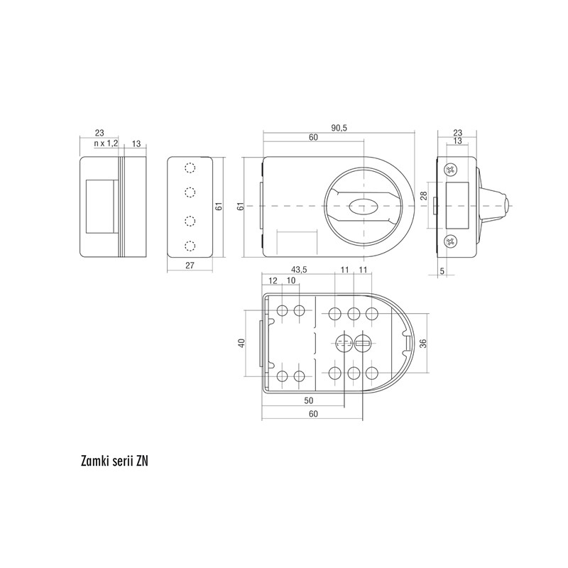 - Odległość środka wkładki/gałki od czoła zamka: 60mm