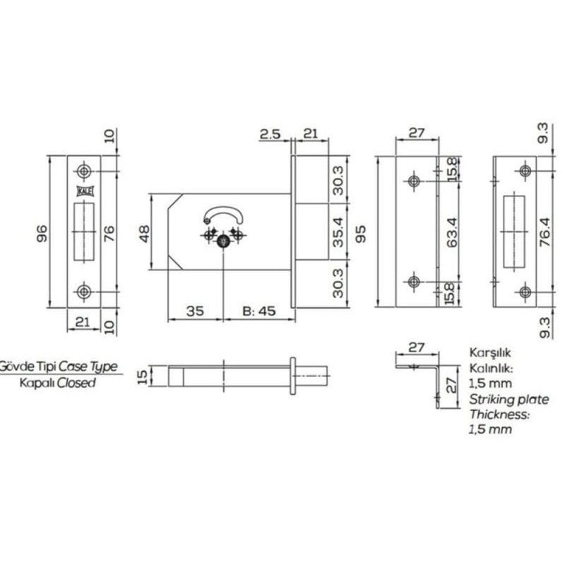 Zamek wpuszczany MORTISE LOCK KALE 156/F 5 kluczy – Bezpieczeństwo na pierwszym miejscu