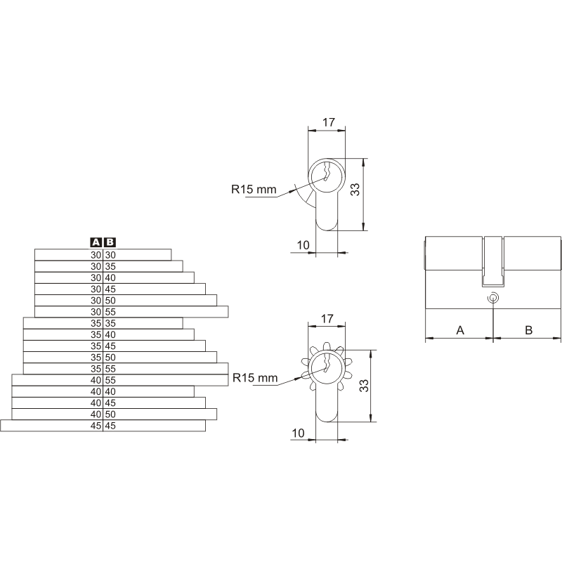 - klucz o profilu z pięcioma nacięciami, w komplecie 3 szt. kluczy