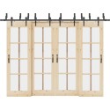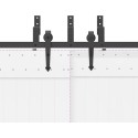 • Idealny do podwójnych drzwi do stodoły: gdy przestrzeń na ścianie jest ograniczona, zestaw uchwytów omijających drzwi do stodoły umożliwia niezależne przesuwanie dwóch drzwi na dwóch szynach bez konieczności zapewnienia dodatkowego miejsca.