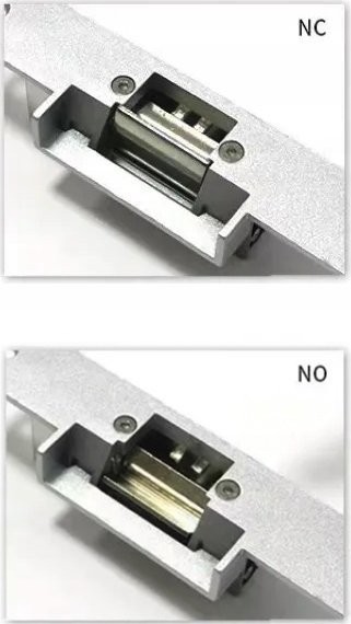 Terminologia NC (Normally Closed) odnosi się do stanu zamka w przypadku braku zasilania. W trybie NC, gdy zamek nie jest zasilany, pozostaje otwarty. Oznacza to, że drzwi można swobodnie otworzyć, gdy nie ma zasilania.