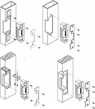 3. Przymocowanie zamka: Przykręć elektrozaczep za pomocą dostarczonych śrub montażowych, upewniając się, że jest stabilnie zamocowany.