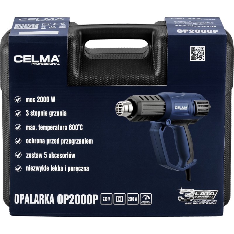 Opalarka CELMA Professional OP2000P przeznaczona jest do formowania i zgrzewania tworzywa sztucznego, usuwania farby i do obkurczania węży termokurczliwych. Można ją również stosować do lutowania rurek miedzianych i usuwania połączeń klejonych, a także do rozmrażania rur wodociągowych.