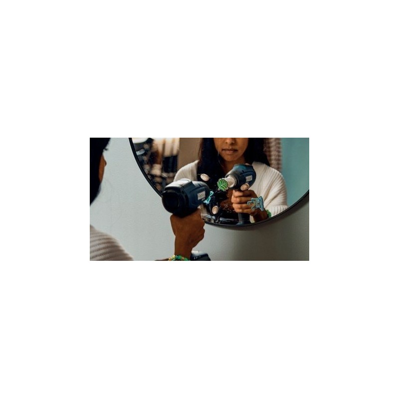Przejrzysty ekran LCD umożliwia łatwą regulację temperatury oraz przepływu powietrza, a także wyświetla stan naładowania akumulatora. Dzięki temu użytkownik zawsze ma kontrolę nad parametrami pracy narzędzia.