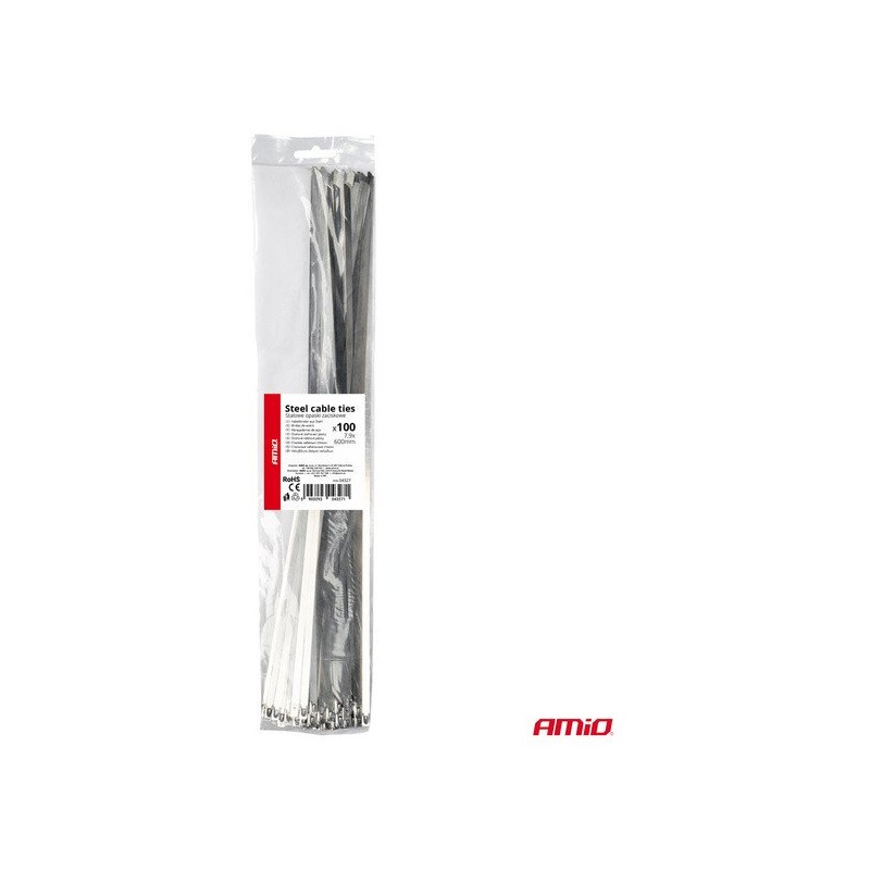 Opaski zaciskowe metalowe ze stali nierdzewnej 7.9x600mm 100 szt. amio-04327