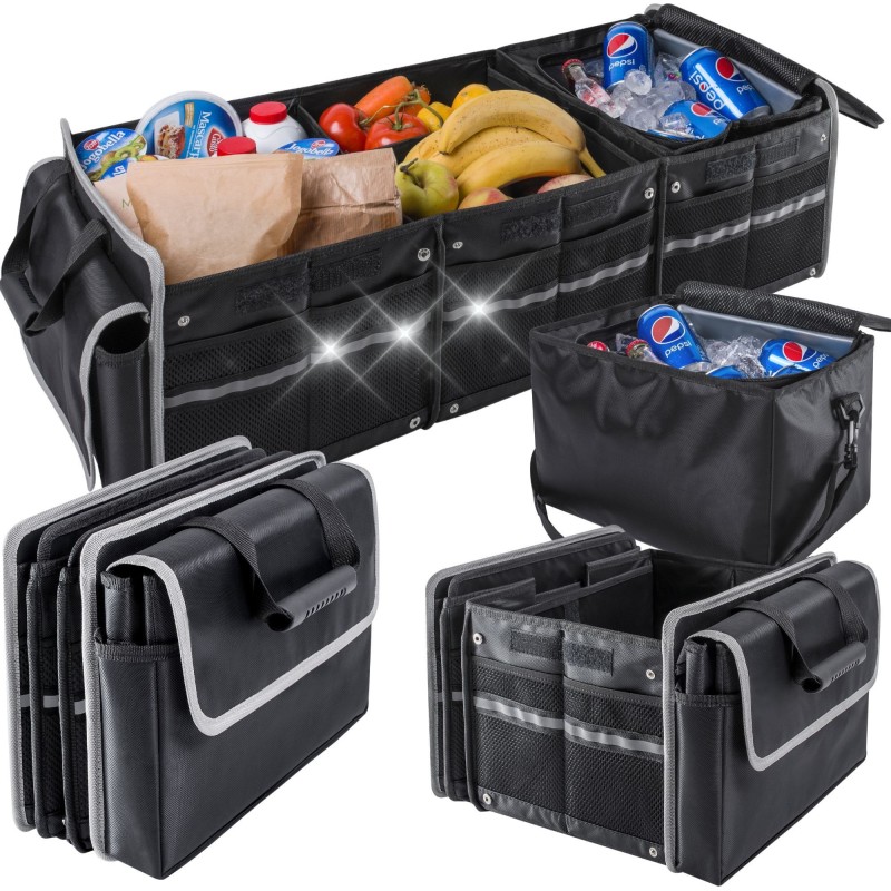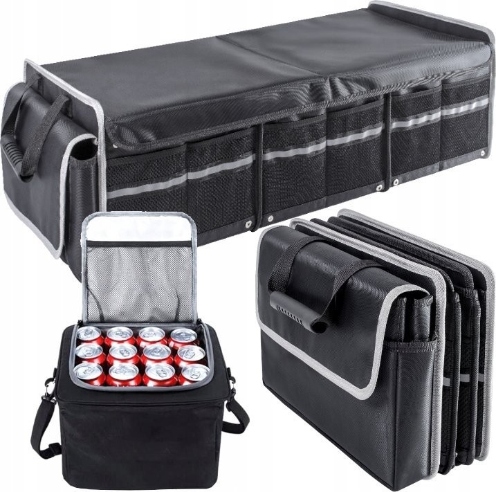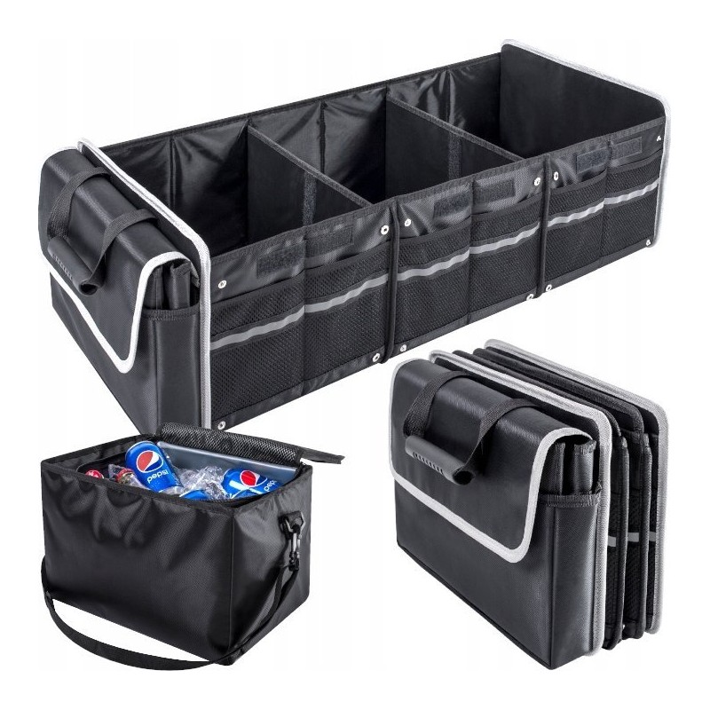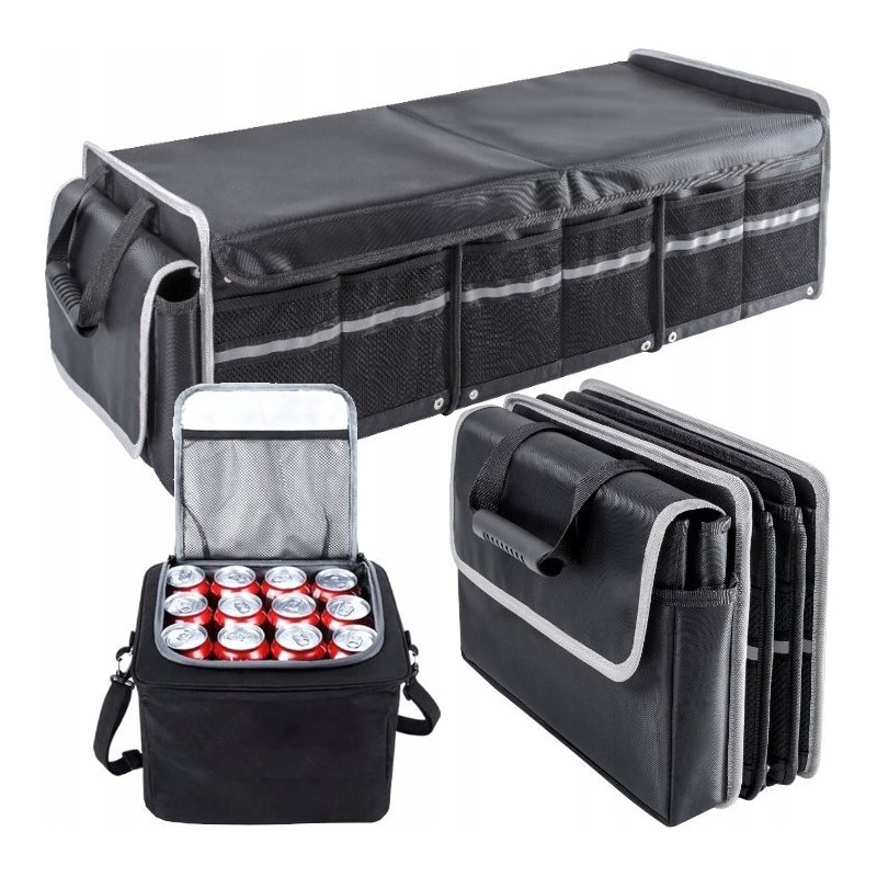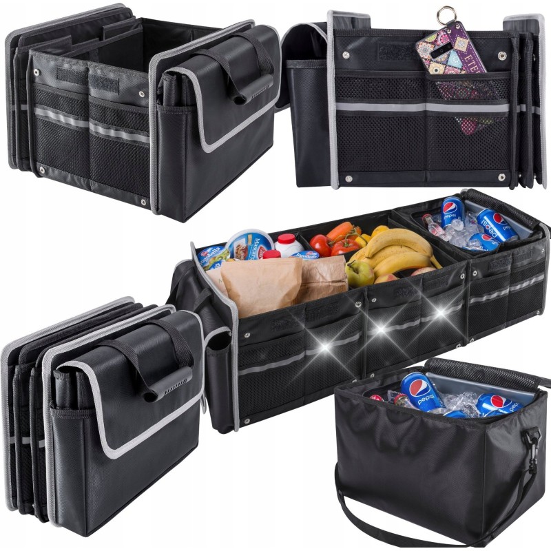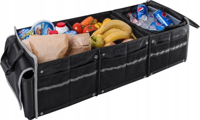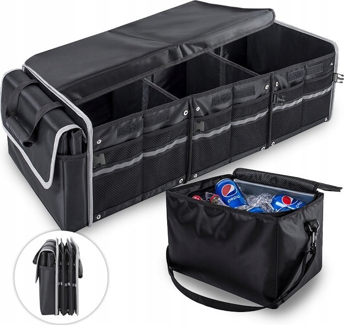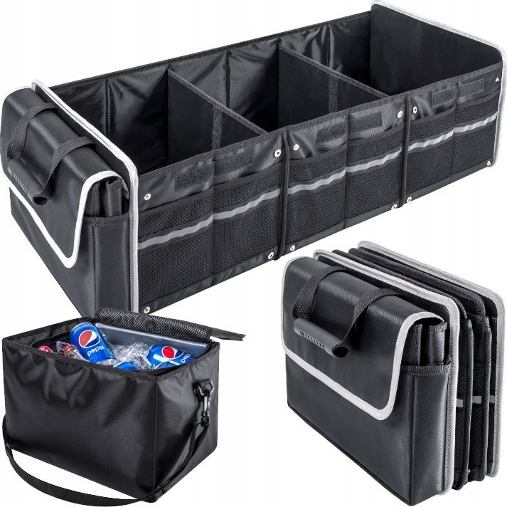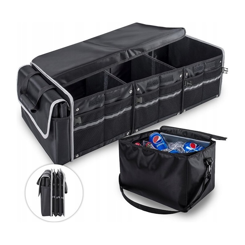 SKŁADANY DUŻY ORGANIZER TORBA DO BAGAŻNIKA SAMOCHODU - 3 KOMORY plus WYJMOWANA TORBA TERMOIZOLACYJNA