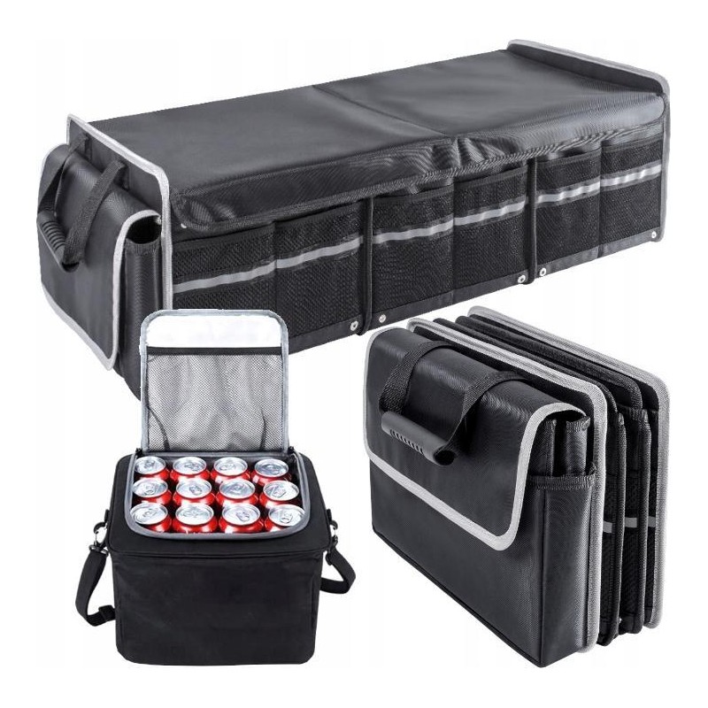 ⏩ DUŻA SKŁADANA TORBA DO BAGAŻNIKA - 3 KOMORY PLUS WYJMOWANA TORBA Z TERMO IZOLACJĄ