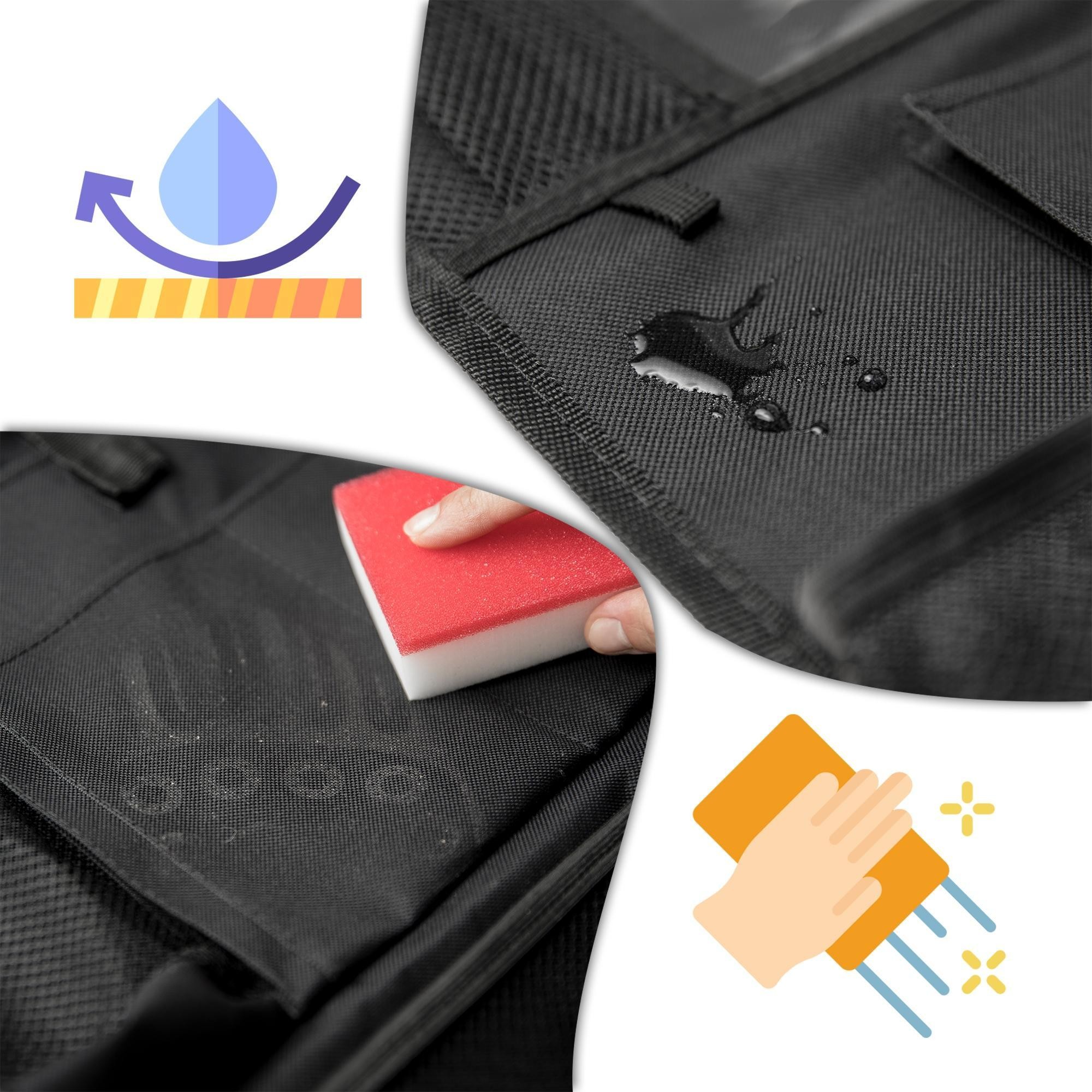 Nasz ochraniacz na tylne siedzenie jest wodoodporny, do czyszczenia wystarczy wilgotna ściereczka, szybko i wygodnie!