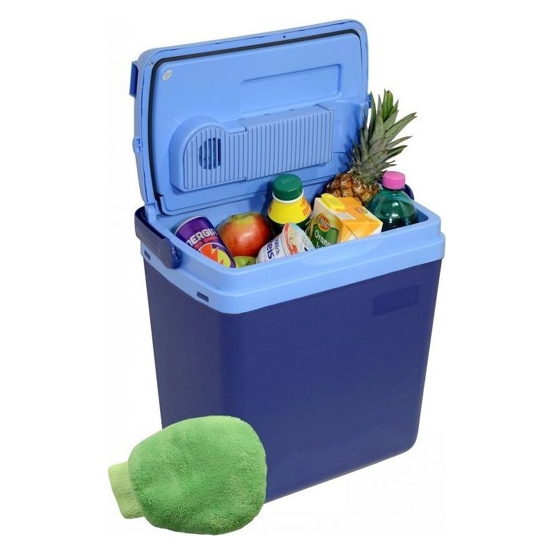 Przenośna lodówka z ogrzewaniem. Wewnętrzny wyświetlacz temperatury. Pakiet zawiera bezpłatny prezent - w środku znajduje się praktyczna rękawica do prania z mikrofibry, idealna do czyszczenia na sucho i na mokro. Kabel z wtyczką do gniazda zapalniczki samochodowej 12V i kablem 230 V.
