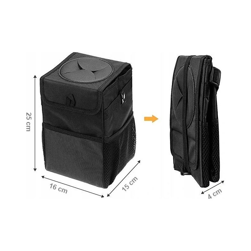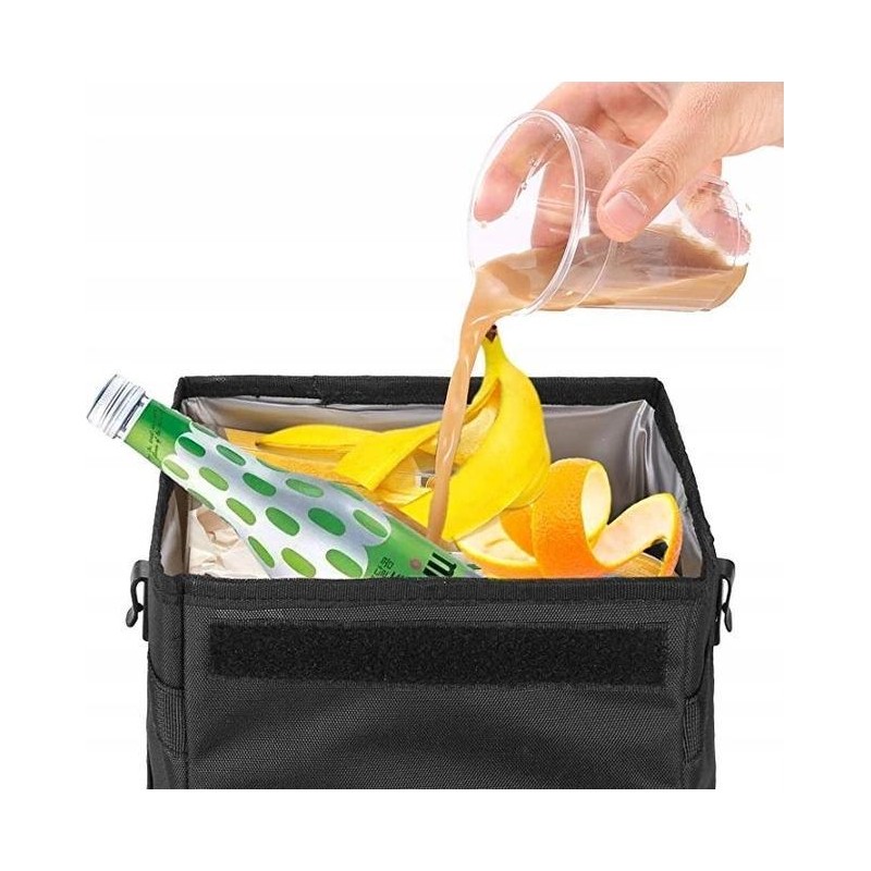 Kosz posiada wodoszczelną wyściółkę dzięki temu nie musisz się obawiać, że przecieknie. Powierzchnia wewnątrz jest łatwa do czyszczenia. Pokrywa kosza jest zamykana na rzep, który jest wszyty na całej długości pokrywy. Wlot kosza jest szczelny, dzięki temu żadne zapachy nie przedostają się do wnętrza pojazdu.