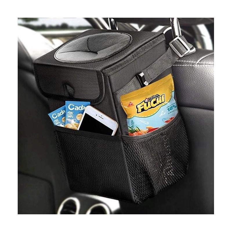 ⏩ Wodoszczelny samochodowy kosz na śmieci z pokrywą z 3 kieszeniami, pojemność 6 l