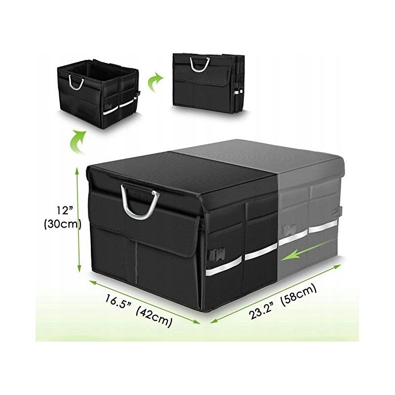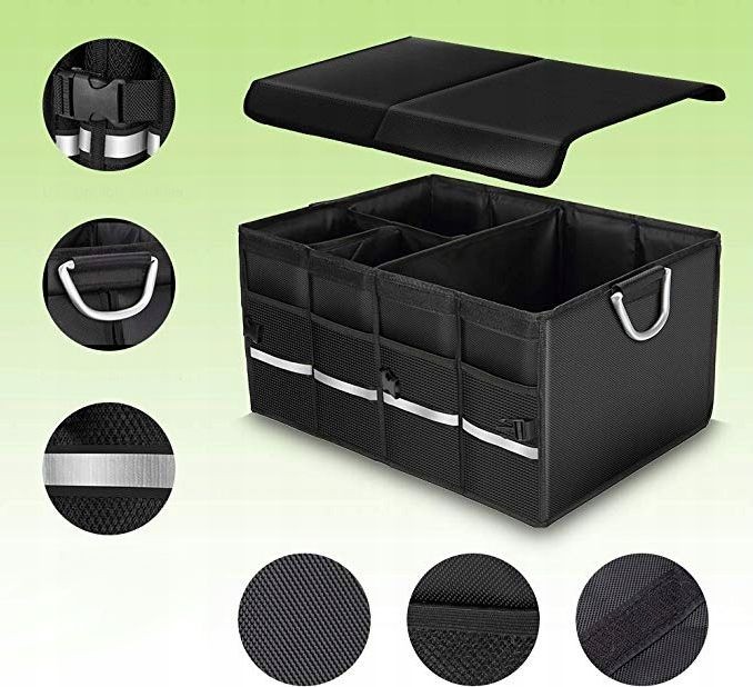Składany praktyczny organizer do bagażnika samochodu, dzięki któremu zadbasz o porządek w swoim aucie. Organizer wyposażony jest w 4 komory. Bez trudu pomieści wszystkie podręczne przedmioty, które będą miały swoje stałe miejsce. Zadbaj także o bezpieczeństwo i porządek - przedmioty podczas gwałtownych manewrów nie porozrzucają się po aucie.