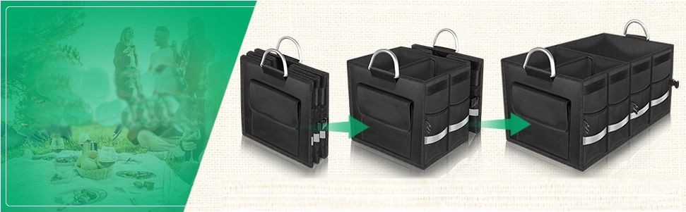Jeśli nie potrzebujesz aż tyle miejsca zestaw klamer umożliwia złożenie organizera do połowy jego wielkości lub możesz go całkowicie złożyć gdy nie jest używany. Może być również używany jako torba na zakupy lub piknik czy na plażę.