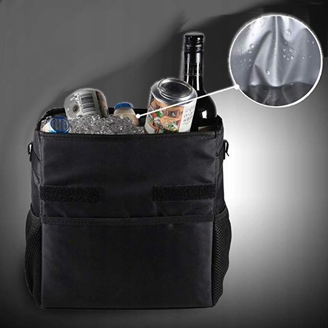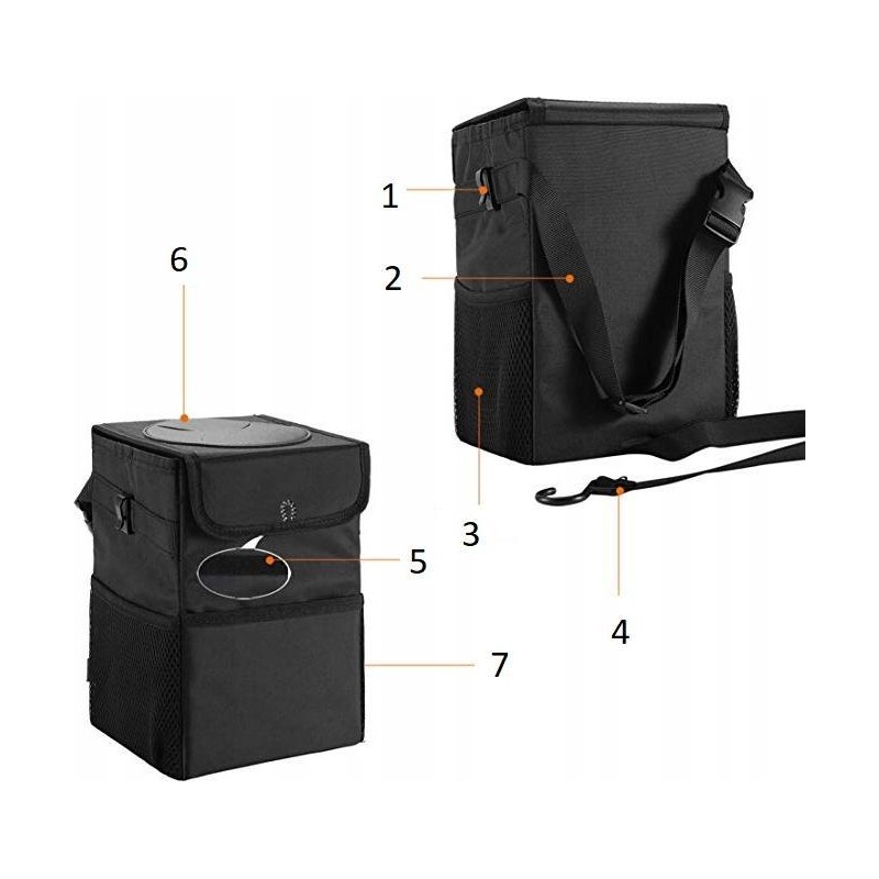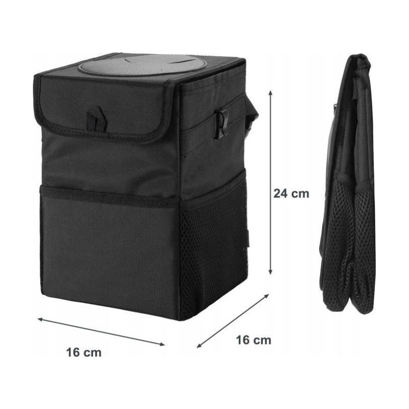 Kosz posiada wodoszczelną wyściółkę dzięki temu nie musisz się obawiać, że przecieknie. Powierzchnia wewnątrz jest łatwa do czyszczenia. Pokrywa kosza jest zamykana na rzep, który jest wszyty na całej długości pokrywy. Wlot kosza jest szczelny, dzięki temu żadne zapachy nie przedostają się do wnętrza pojazdu.