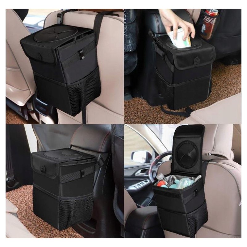 ⏩ Wodoszczelny samochodowy kosz na śmieci z pokrywą z 3 kieszeniami, pojemność 6 l