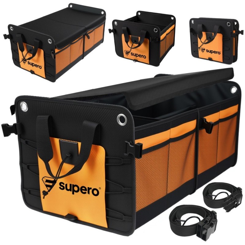 Wymiary organizera Supero (60 cm x 37 cm x 31 cm) zostały zaprojektowane z myślą o maksymalnym dopasowaniu do standardowych bagażników samochodowych. Po złożeniu osiąga jedynie 6 cm grubości, co ułatwia jego przechowywanie, gdy nie jest używany.