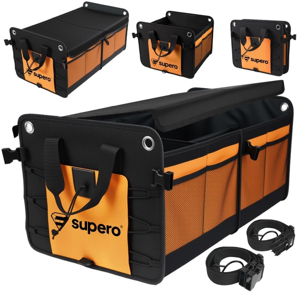 Organizer samochodowy Supero do bagażnika duzy z pokrywą, czarno-pomarańczowy
