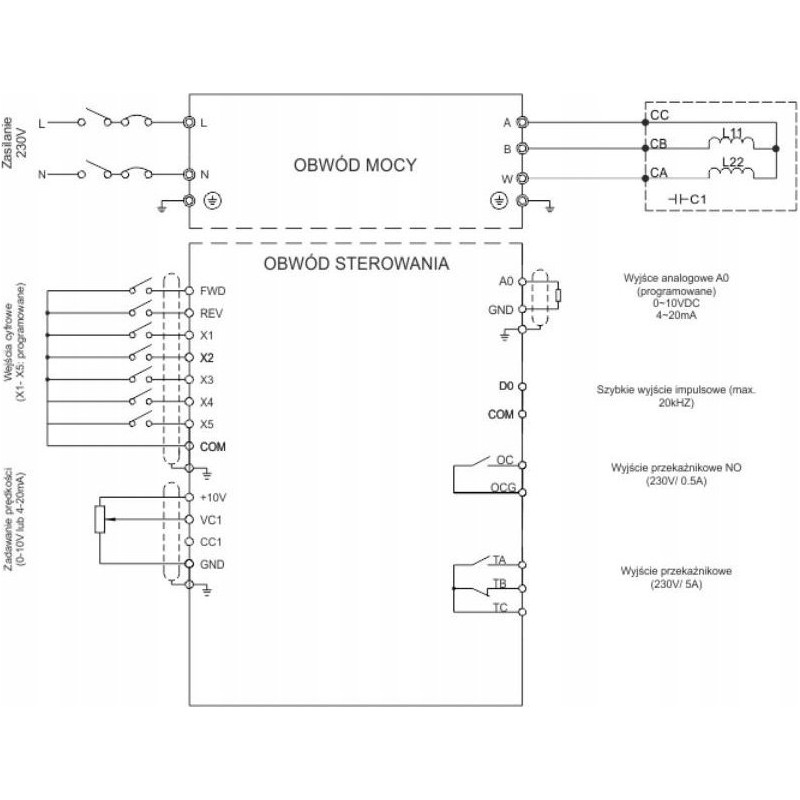 Falowniki serii FA-1F przeznaczone są do sterowania jednofazowych silników prądu przemiennego z pomocniczym kondensatorem