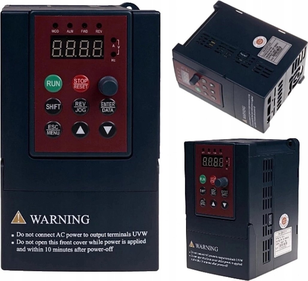 Napięcie wejściowe: 1x230V. Moc wejściowa: 2,8 kVA. Napięcie wyjściowe: 1x230V. Prąd wyjściowy: 10A. Maksymalna moc silnika: 1,5 kW.