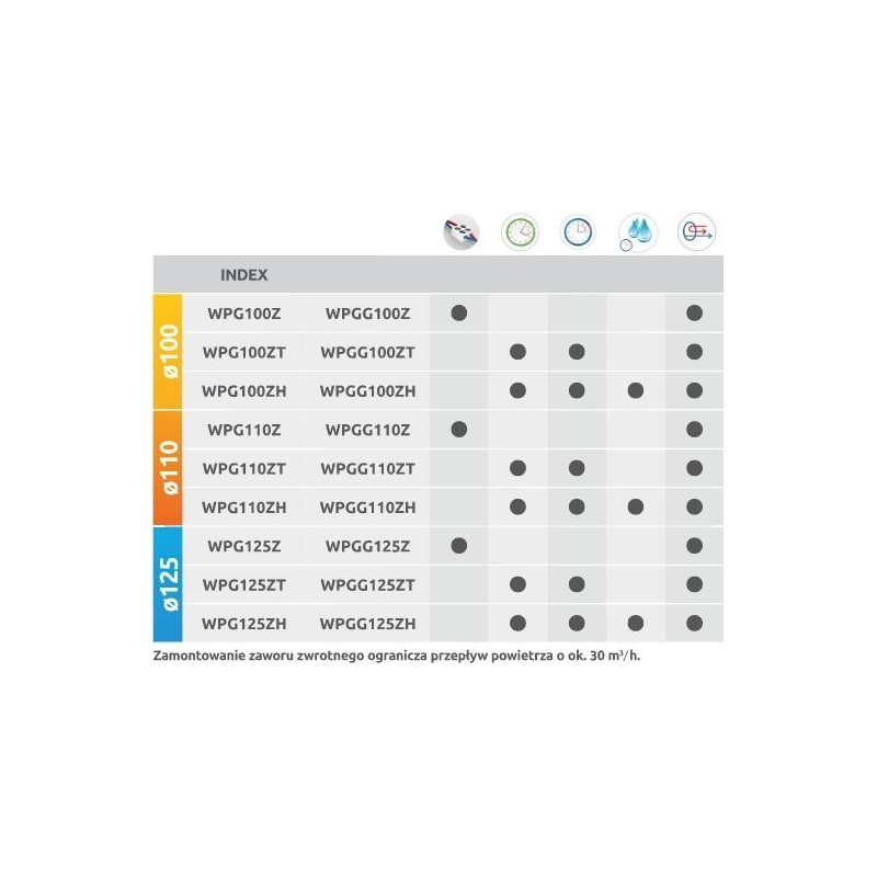 W opakowaniu zawierającym produkt, znajduje się dodatkowo zawór zwrotny ze sztywnymi klapkami. Jego zadaniem jest zapobieganie efektowi ciągu wstecznego.