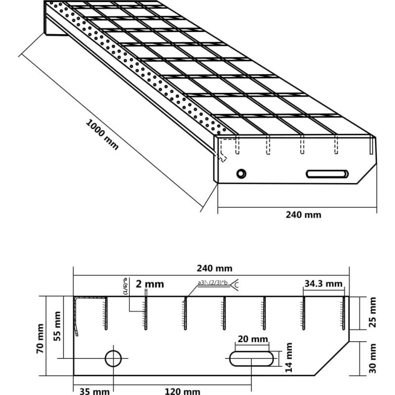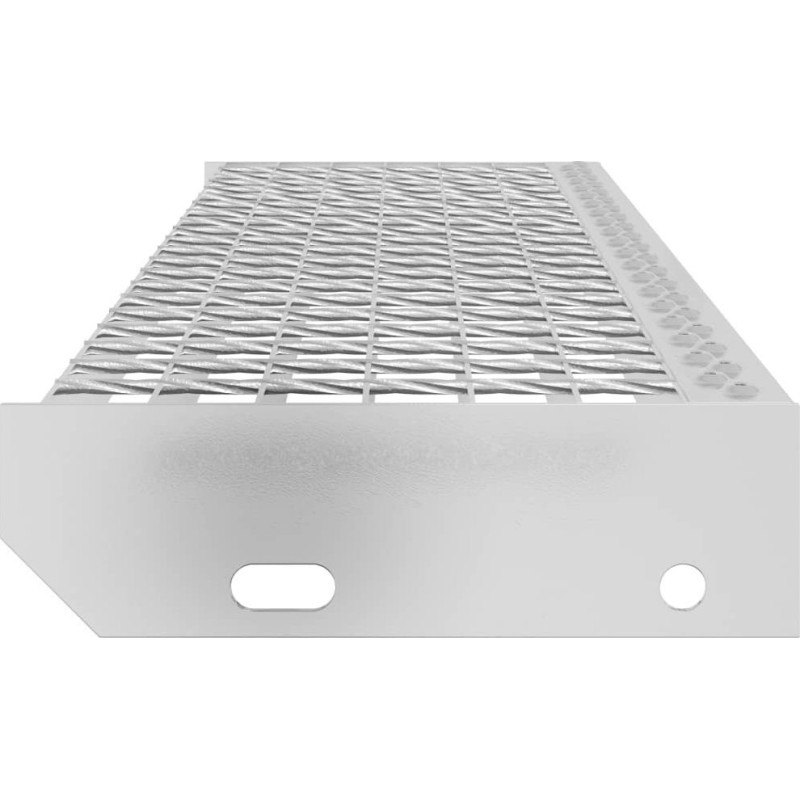 - Wszechstronność: ta kratownica schodowa ma powierzchnię z kraty, która umożliwia odpływ wody, oleju i śniegu przez stopień. Funkcja ta zapewnia bezpieczeństwo podczas wchodzenia po schodach.