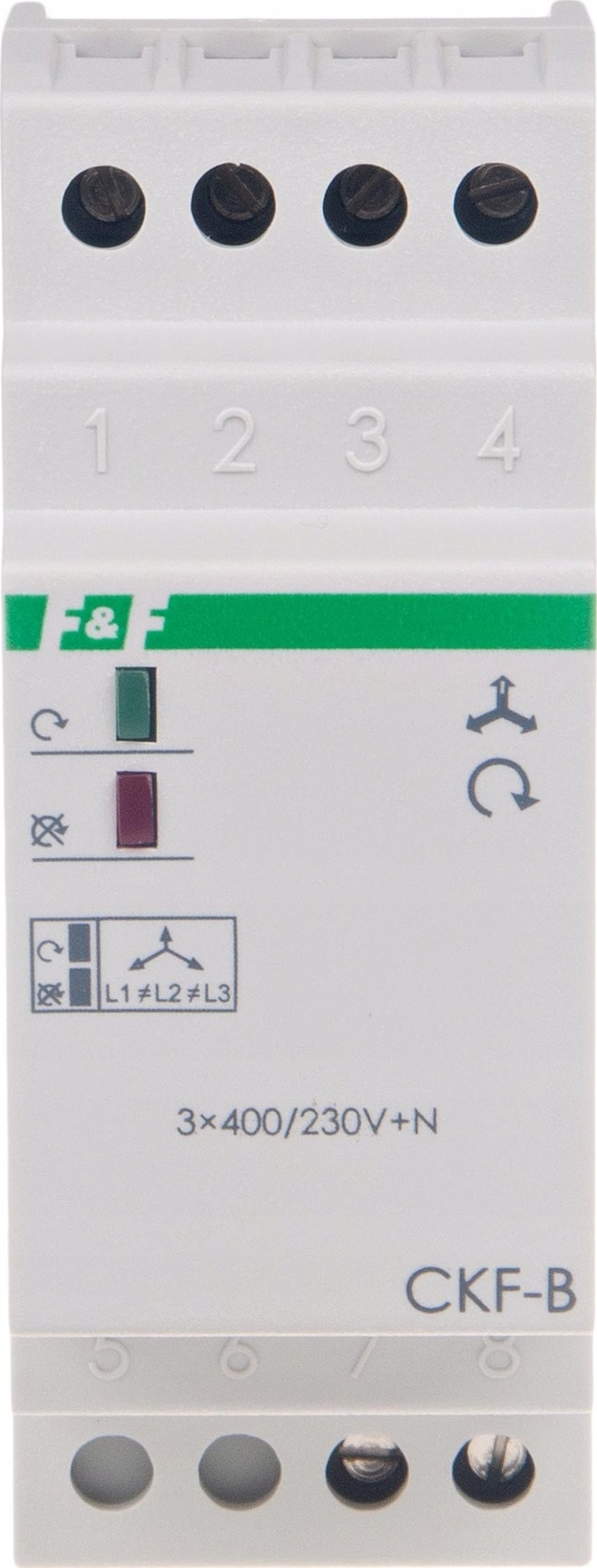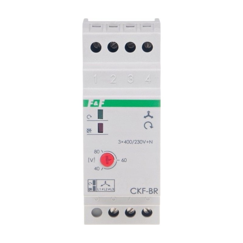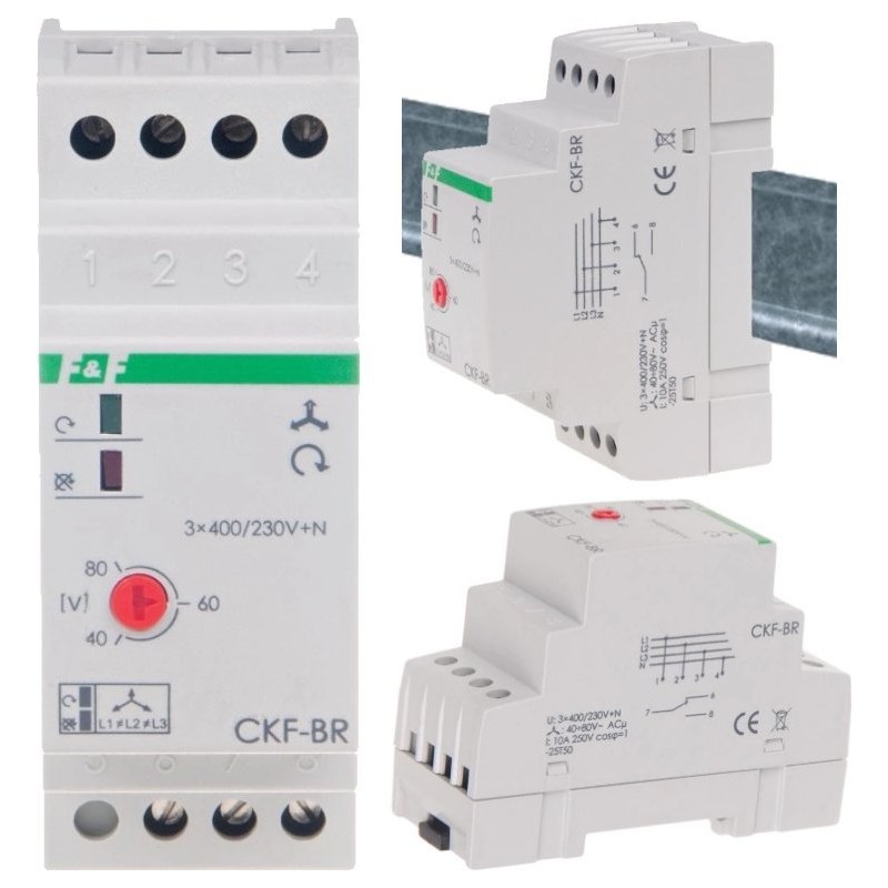 F&F Przekaźnik kolejności i zaniku faz F&F CKF-BR-TRMS 10A 1NO/NC opóźnienie 4s asymetria 40-80V True RMS na szynę DIN