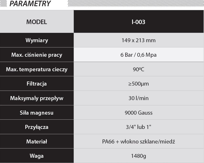 SEPARATOR ZANIECZYSZCZEŃ FILTR MAGNETYCZNY 1 CAL IBO