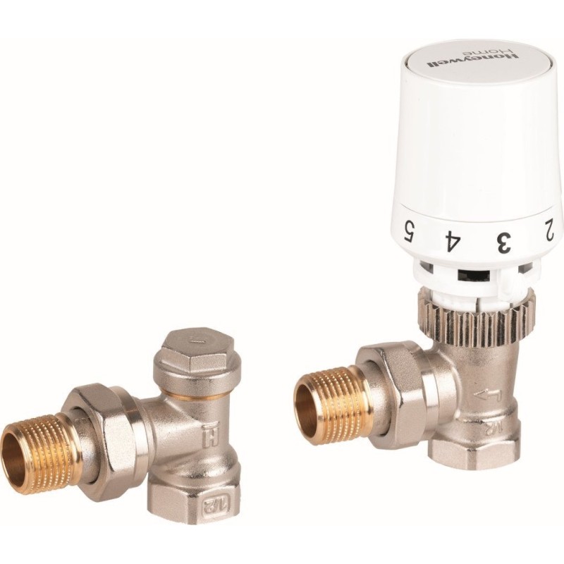Honeywell Zestaw do grzejników bocznozasilanych: głowica T5019 + zaw. grzej. kątowy V2020EVS15 + zaw. powr. kątowy V2420E0015, 1