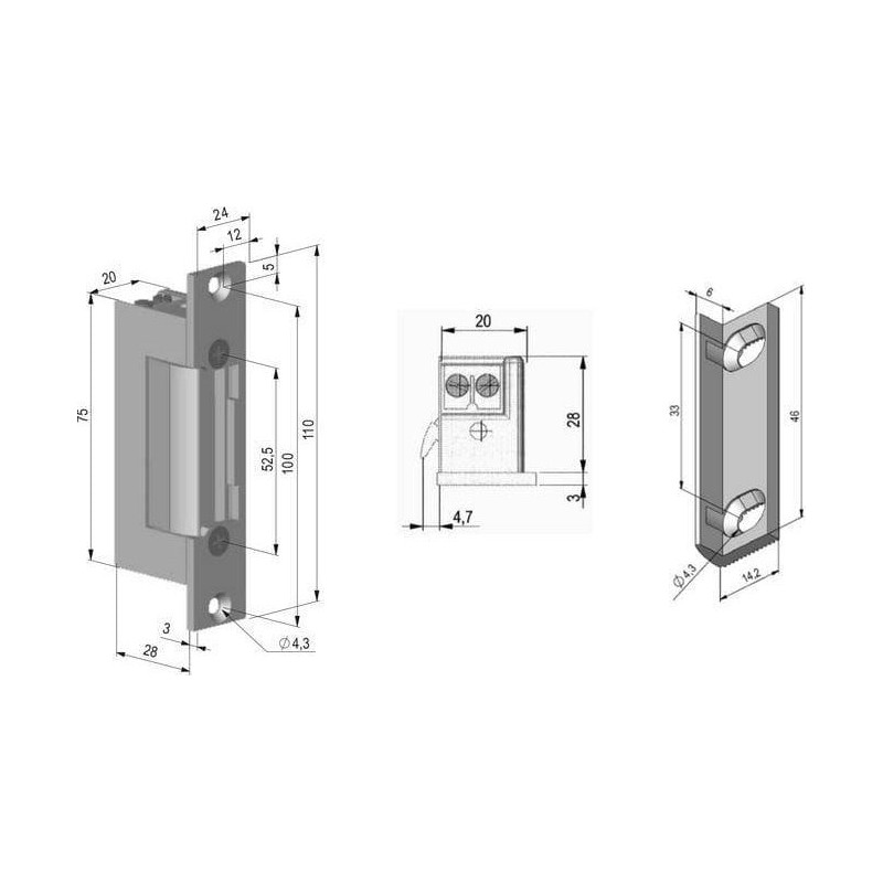 Razem z elektrozamkiem otrzymasz uniwersalną, metalową listwę umożliwiającą montaż elektrozamka w słupku bramy lub ościeżnicy drzwiowej.