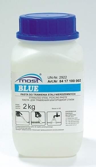 Pasta trawiąco-pasywująca do usuwania zgorzelin i przebarwień ze spoin powstałych w procesie spawania stali szlachetnych i stopów niklowych. Czas trawienia: 15-60 min. (stal). Wydajność (1kg): 50-80 m.b. Metoda nakładania: pędzlem.