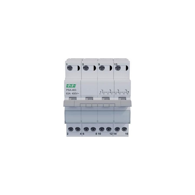 F&F Przełącznik sieć-agregat 63A 4P F&F PSA-463 trójfazowy modułowy na szynę DIN