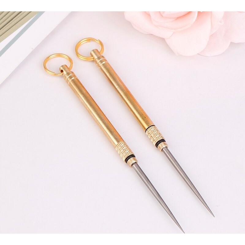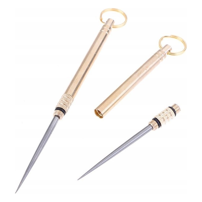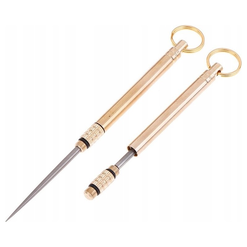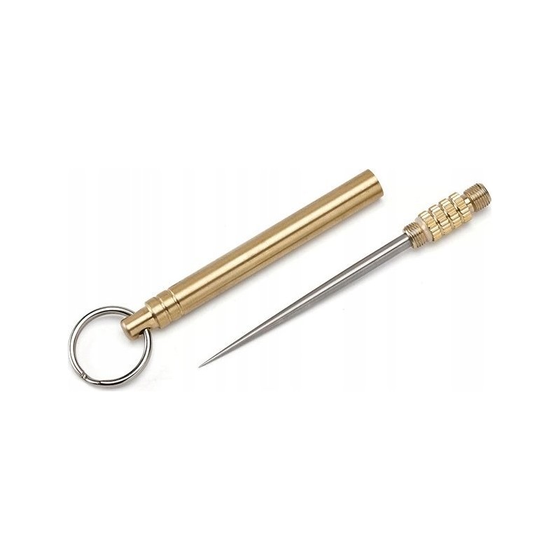 Metalowy szpikulec w kształcie breloczka z zawieszką. Składa się z 2 elementów - można go skręcić. Może być używany jako ołówek lub marker do twardych materiałów.