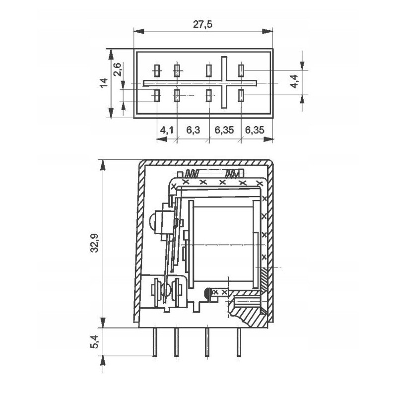 - Konfiguracja styków: DPDT