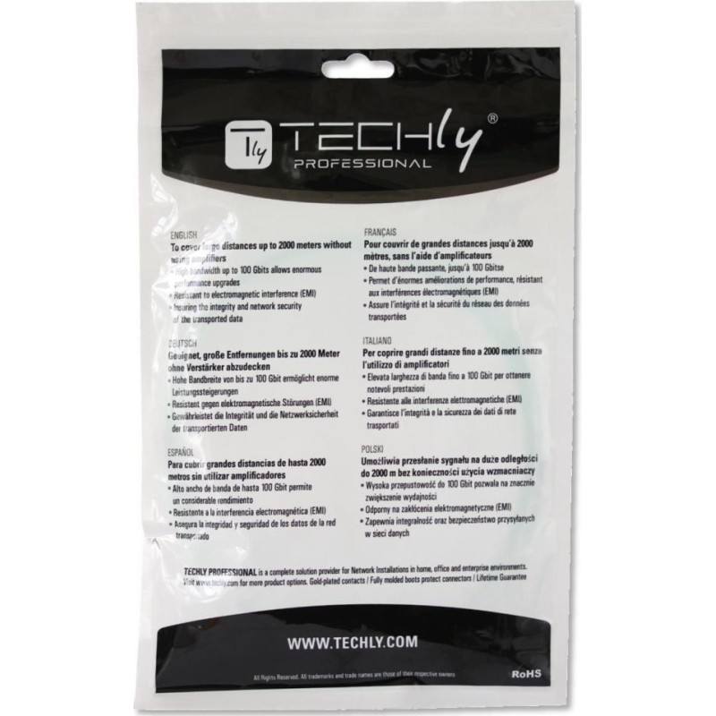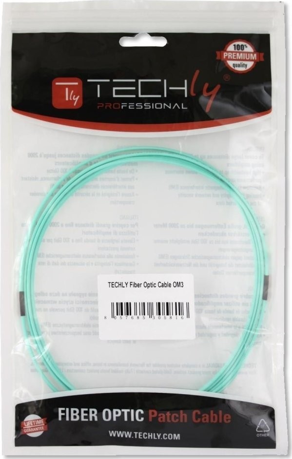 Techly ST-LC M-M 10m. Długość kabla: 10 m, Typ światłowodu: OM3, Złączka 1: ST, Złączka 2: LC, Średnica rdzenia: 50 µm, Pełny dupleks