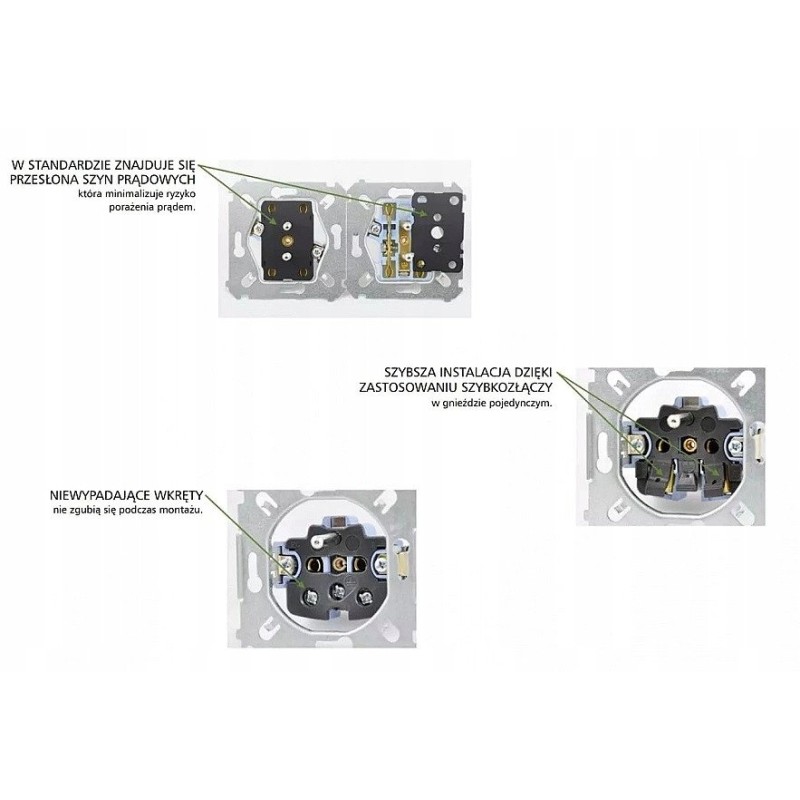 Model ten przeznaczony jest do montażu podtynkowego, co pozwala na estetyczne ukrycie okablowania. Dzięki temu, łącznik nie tylko działa efektywnie, ale także nie zakłóca harmonii wizualnej pomieszczenia, co czyni go doskonałym rozwiązaniem do nowoczesnych wnętrz.