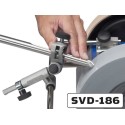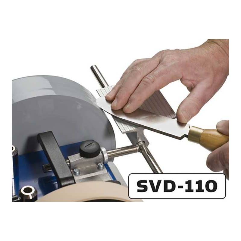 Określeniem kluczowym dla systemu ostrzenia Tormek jest powtarzalność. Ostrzone narzędzie prowadzone jest za pomocą przyrządu - przy jednym ostrzeniu zdejmowana jest tylko niewielka ilość stali, więc ostrzenie jest bardzo szybkie. Ponadto wydłuża się żywotność użytkowa narzędzia. System Tormek wykorzystuje unikalny kamień ścierny wykonany z tlenku glinu. Ostrzenie wykańczające i polerowanie wykonywane na ściernicy skórzanej, również z wykorzystaniem przyrządów zapewniających pełną kontrolę procesu, nadaje narzędziu ostrość brzytwy. Podpora uniwersalna - serce systemu - posiada regulację dokładną, ułatwiającą precyzyjną nastawę. Podpora może być ustawiona pionowo, dla ostrzenia w kierunku przeciwko ostrzu, albo poziomo, zgodnie z kierunkiem ostrza. Tormek T-4: jest kolejną wersją rozwojową modelu T-3, podnoszącą precyzję i stabilność na zupełnie nowy poziom. Najważniejsze zespoły, jak silnik i wałek główny są zamontowane w części górnej, wykonanej w postaci odlewu cynkowego, w nim również osadzone są na stałe tulejki do podpory uniwersalnej. Zapewnia to niezwykłą precyzję podpory, które jest bazą dla całego systemu przyrządów ostrzarskich Tormek. Otrzymują wiec Państwo urządzenie wysokiej jakości, idealne do użytku domowego lub majsterkowania, którym można naostrzyć wszystkie najczęściej spotykane narzędzia ostrzowe. Wyposażone w oryginalny kamień szlifierski, który ostrzy szybko, zapewniając jednocześnie gładką powierzchnię. Ostrzarka dostarczana jest z obciągaczem kamienia SP-650, kątomierzem WM-200, pastą szlifierską PA-70 oraz opracowaną przez Tormek płytą DVD i podręcznikiem o ostrzeniu na mokro. Ostrzarkę T-4 można wyposażyć w przyrządy potrzebne do ostrzenia konkretnych narzędzi (sprzedawane oddzielnie). Wałek główny wykonany jest ze stali nierdzewnej i posiada nakrętkę typu Ezylock. Silnik 230 V 1-faz. 30 min/h. Kamień szlifierski 200x40 mm Produkcja szwedzka, 7 lat gwarancji. Podręcznik można pobrać ze strony www.tormek.se po zarejestrowaniu się, albo kupić w sklepie.