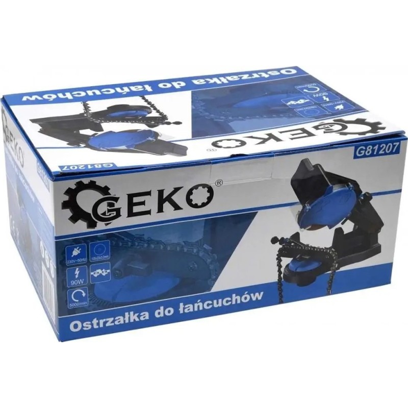 Solidna strugarka renomowanej marki narzędziowej GEKO przeznaczona do szlifowania/ostrzenia łańcuchów pilarek elektryczny i spalinowych.